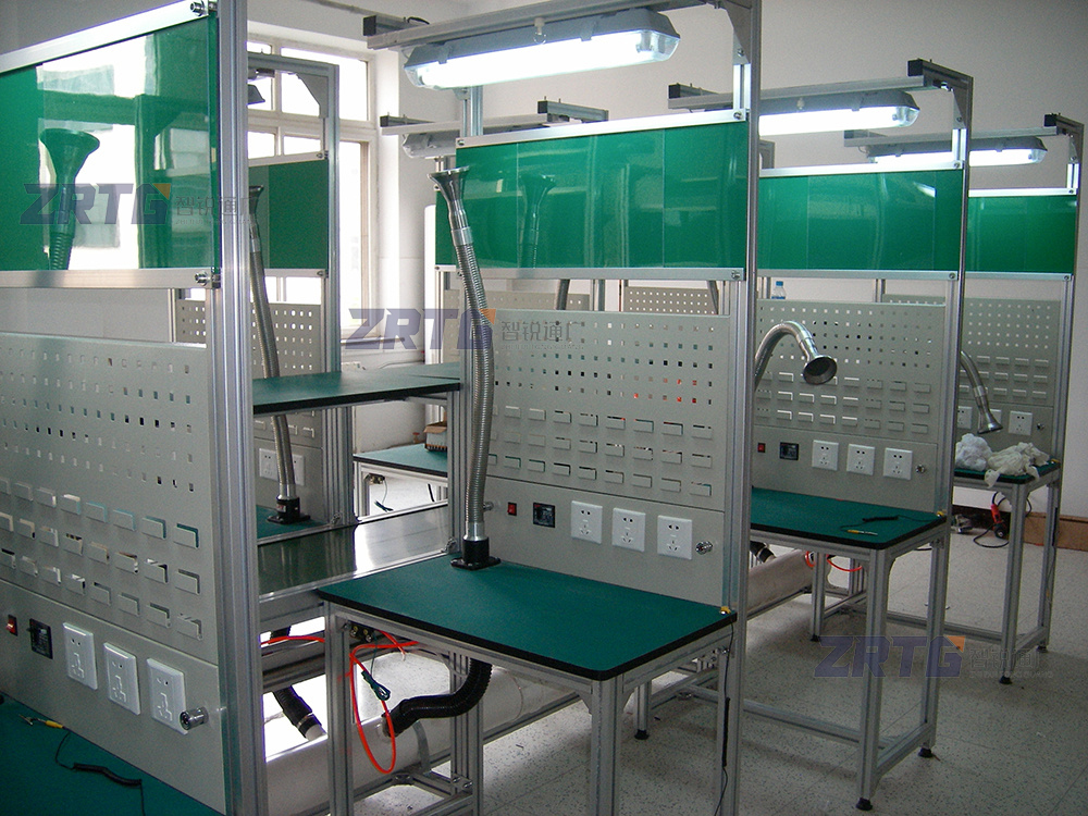 1、气路管道、日光灯、24V电源、工具挂钩、铝合金滑导、工艺看板、仪表搁板台、带锁抽屉、带锁工具箱、防静电手环插座;