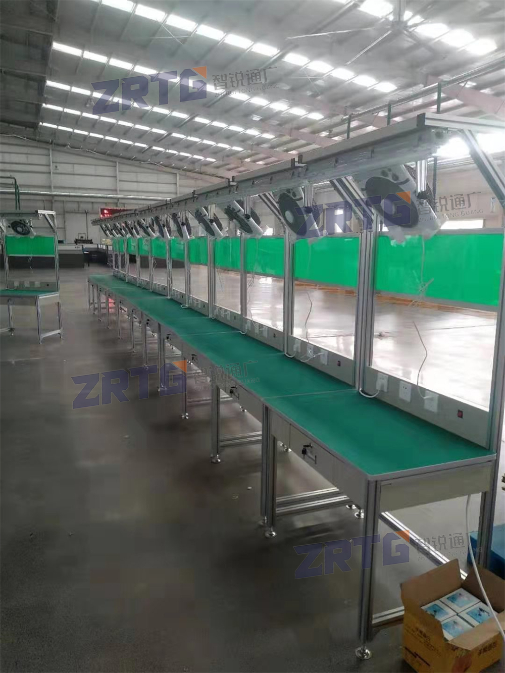 2、线体材料:支架采用碳钢方管40*40,50*50表面静电喷塑处理或铝合金型材;