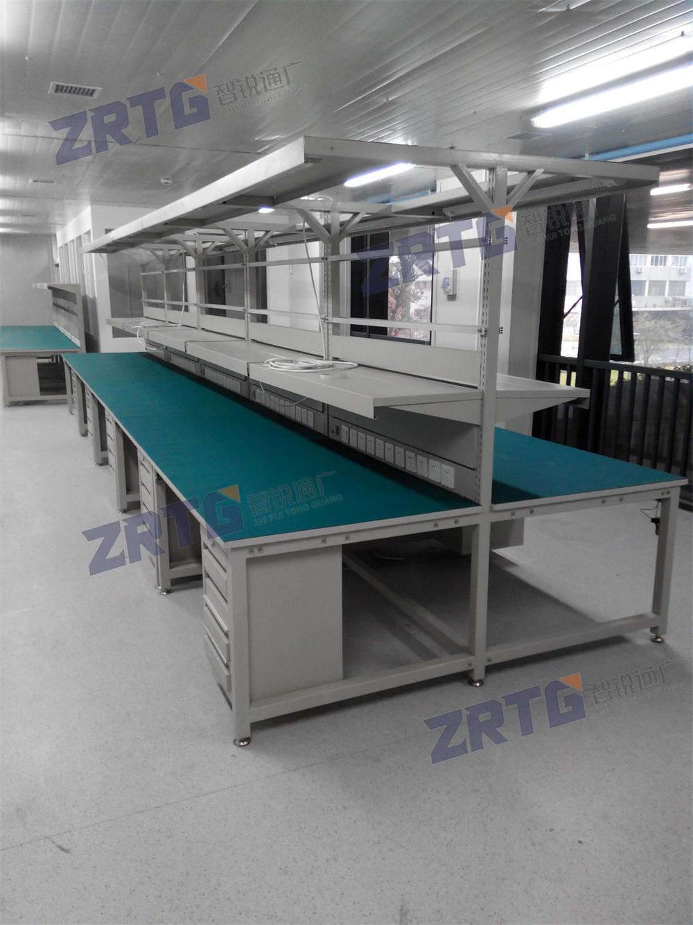3、可选配置:照明灯、灯饰板、电源插座、工艺看板、仪表台(宽度250-400mm)、物料盒挂板、中档板、工具箱/抽屉、工具挂钩、吸烟装置;