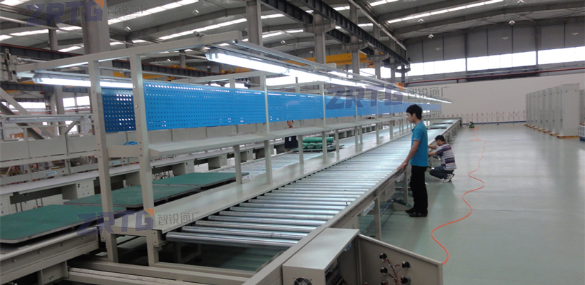 滚筒装配流水线产品简介: 一、适用范围: 滚筒线适用于各类箱、包、托盘等件货的输送,散料、小件物品或不规则物品需放在托盘上或周转箱内输送,能够输送单件重量很大的物料,或承受较大的冲击载荷。 二、产品类型: 滚筒输送线按驱动方式可分为动力滚筒线和无动力滚筒线,按布置形式可分为水平输送滚筒线、倾斜输送滚筒线和转弯滚筒线。还可按客户要求特殊设计,以满足各类客户的要求。标准滚筒线内宽度为200、300、4