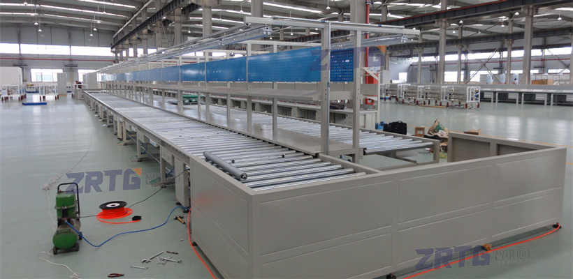 滚筒装配流水线产品简介: 一、适用范围: 滚筒线适用于各类箱、包、托盘等件货的输送,散料、小件物品或不规则物品需放在托盘上或周转箱内输送,能够输送单件重量很大的物料,或承受较大的冲击载荷。 二、产品类型: 滚筒输送线按驱动方式可分为动力滚筒线和无动力滚筒线,按布置形式可分为水平输送滚筒线、倾斜输送滚筒线和转弯滚筒线。还可按客户要求特殊设计,以满足各类客户的要求。标准滚筒线内宽度为200、300、4