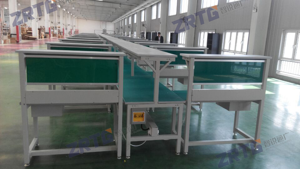 本厂生产的皮带运输生产线运输平稳,可按客户要求定制,并有多种皮带可选用(PVC防静电胶皮、橡胶皮带、食品专用皮带等),可广泛应用于电子电器,塑胶,化工,食品等行业。皮带生产线广泛应用于家电、电子、电器、机械、烟草、注塑、邮电、印刷、食品等各行各业,物件的组装、检测、调试、包装及运输等。线体输送可根据工艺要求选用:普通连续运行、节拍运行、变速运行等多种控制方式;线体因地制宜选用:直线、变道、斜坡等线体形式。皮带生产线也叫带式输送机或胶带输送机,是组成有节奏的流水作业线所不可缺少的经济型物流输送设备。皮带机按其输送能力可分为重型皮带机如矿用皮带输送机,轻型皮带机如用在电子塑料,食品轻工,化工医药等行业。皮带输送机具有输送能力强,输送距离远,结构简单易于维护,能方便地实行程序化控制和自动化操作。运用输送带的连续或间歇运动来输送100KG以下的物品或粉状、颗状物品,其运行高速、平稳,噪音低,并可以上下坡传送。