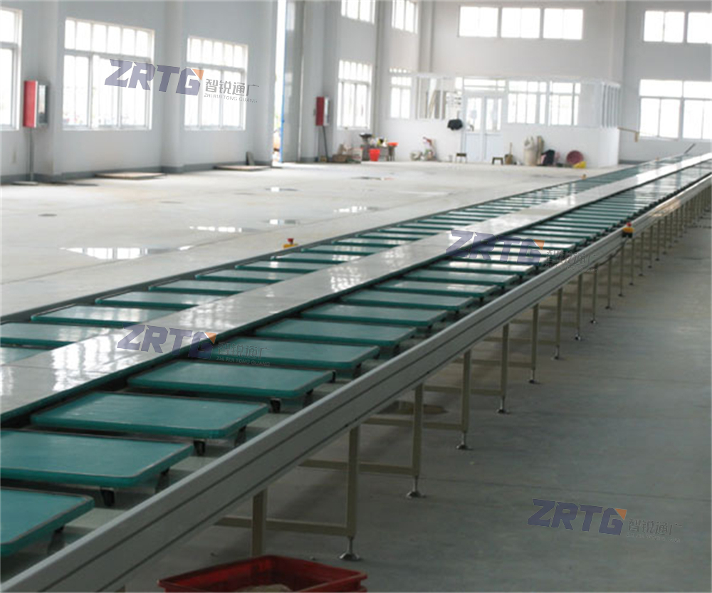 可承受较大载荷、长距离输送;线体形式为直线、转弯输送;板链宽度可根据客户或实际情况设计。板链形式为直线链板、转弯链板,主体结构材质采用碳钢喷塑或镀锌。
