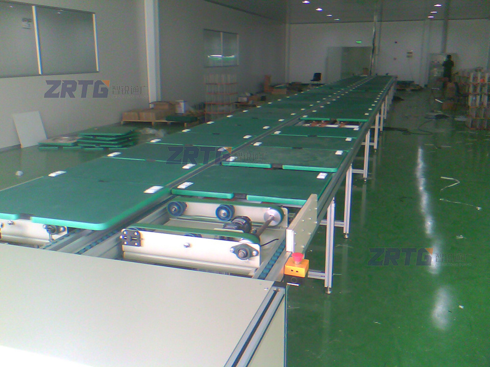 输送线链条采用三倍速链条,链条滚轮采用工程塑胶,具有抗磨、噪音低等特点,输送工装板时顺畅圆滑,运转时安静无声,平稳传动。依照客户生产制程及厂房空间条件,可为客户量身设计规划,务求合理的设计可为客户节省空间的同时达到佳的生产流程。配置升降机接送可以实现双层和多层输送,达到既输送又储存的目的。配置直角横向移栽机,可作平面转向输送,可以使工装板在一个平面内循环输送、循环使用不下线体。工装板上设导电铜板,可实现带电输送,完成调试、老化、检测功能。公司针对客户生产现场需求,参照国内外先进的电子电器生产技术进行优化设计,人性化操作设计,可精简作业人力,更能大大提高生产效率,生产线零部件采用国内外品牌产品,确保生产线长时间稳定运行。